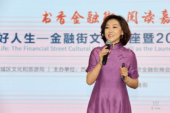 金融街街道辦事處主任徐建生,西城區(qū)文化與旅游局工會主席王來明,金融街商會秘書長、金融街書局執(zhí)行董事兼總經(jīng)理沈宏昌,中非產(chǎn)能合作基金綜合行政總監(jiān)詹旭,北京農(nóng)商銀行總行機關工會主席毛冉輝,北京百萬莊圖書大廈有限公司常務副總經(jīng)理陳強,中國少年兒童新聞出版總社《中國兒童報》副主編高慧月,北京讀書形象大使、北京金牌閱讀推廣人宸冰老師等來自近50家金融機構(gòu)及大型企業(yè)集團的近100多位閱讀愛好者到場參加了啟動儀式。隨后,北京讀書形象大使、北京金牌閱讀推廣人宸冰為現(xiàn)場嘉賓做了“閱讀成就美好人生”講座。