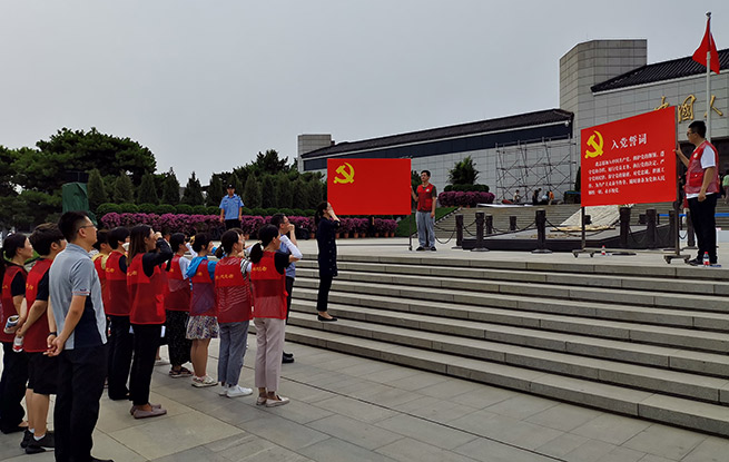 宛平城地區(qū)新時(shí)代文明實(shí)踐所的25名青年志愿實(shí)踐者們一起在抗日戰(zhàn)爭紀(jì)念館前重溫入黨誓詞。