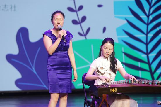 繪本劇也是在閱讀的基礎(chǔ)上延展的一種表演形式,是“閱讀+”的一次探索。本次活動(dòng)的主持人,來自中央廣播電視總臺(tái)的主持人賀超,邀請(qǐng)中央音樂學(xué)院音樂教育學(xué)者管慧丹和青年古箏演奏家侯奕上臺(tái),為大家展示 “閱讀+”的另一種表演形式——古詩(shī)詞唱讀。伴隨著悠揚(yáng)的古箏琴聲,全場(chǎng)吟唱,在座的每位觀眾都深深地感受到中國(guó)傳統(tǒng)文化的魅力。