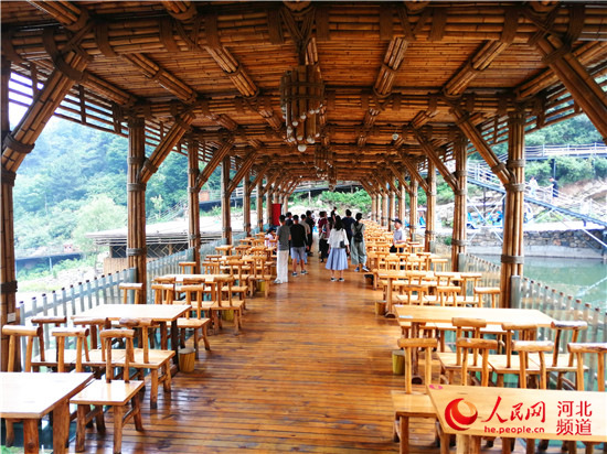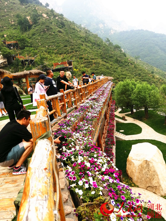 “這里的景色好看,溫度也不高,挺舒服。”在漫山花溪谷景區(qū)的竹廊美食苑休息區(qū),一位頭發(fā)花白的老人說,她和閨女專門從石家莊開車過來玩,從山下爬到這里的。當(dāng)問到“為什么不坐游覽車上來”,老人笑著說,“坐游覽車上來就沒意思了,我們就是邊爬山邊享受這山里涼爽的空氣和欣賞沿路的景色。這里真是個養(yǎng)老的好地兒?!?/p>