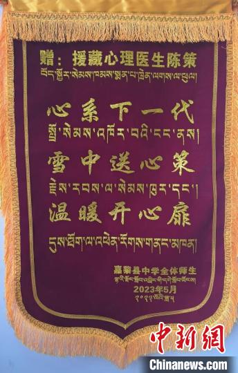 那曲市嘉黎縣中學(xué)全體師生贈(zèng)送陳策的錦旗。受訪者 供圖