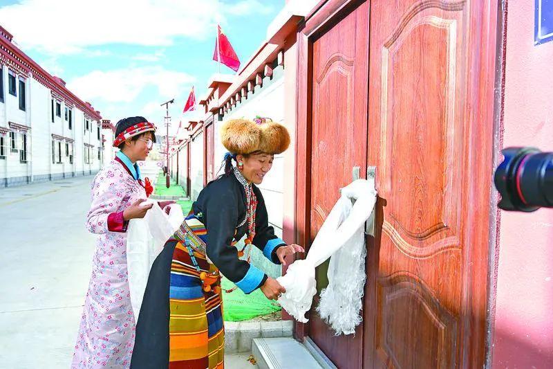 上海援藏重點項目——拉孜縣查務(wù)鄉(xiāng)吉角村集中搬遷暨鄉(xiāng)村振興項目完工并交付,群眾入住新家。
