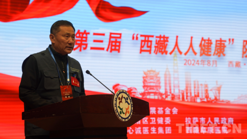 第三屆“西藏人人健康”院士專家進(jìn)藏義診活動啟動儀式授旗現(xiàn)場