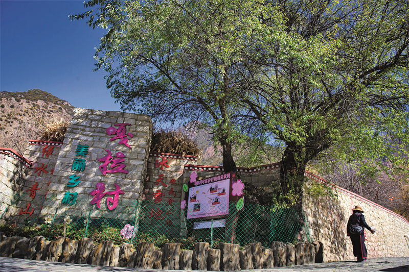 “過去的路,滿是牛糞和泥濘,一下雨根本沒法走,我的母親總是把鞋子拴腰上,赤腳走過村里的路?,F(xiàn)在的嘎拉村,再也不是‘把鞋子拴腰上’的模樣了?!?/p>