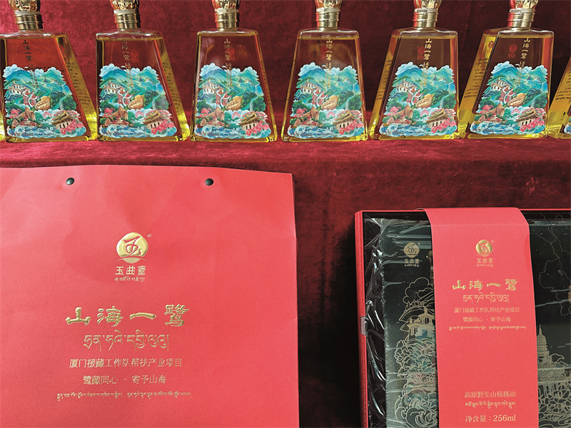 為了讓左貢縣的核桃油走出大山,走向市場(chǎng),廈門(mén)援藏工作隊(duì)在品牌建設(shè)和市場(chǎng)推廣上也下足了功夫。他們幫助注冊(cè)了“玉曲鷺”商標(biāo)。玉曲河是左貢的母親河,鷺則意味著鷺島,充分體現(xiàn)了廈門(mén)左貢兩地一家親的內(nèi)涵。2023年,左貢旺達(dá)食品有限公司及其產(chǎn)品核桃油分別被納入廈門(mén)市對(duì)口支援左貢縣消費(fèi)幫扶企業(yè)和產(chǎn)品推薦目錄,享受廈門(mén)每年3000萬(wàn)以上的消費(fèi)幫扶額度,通過(guò)組織消費(fèi)幫扶活動(dòng),將左貢的核桃油帶到了廈門(mén),帶到了全國(guó),讓更多消費(fèi)者品嘗到了這份來(lái)自高原的珍貴禮物。截至2023年底,公司累計(jì)銷(xiāo)售核桃油21.5萬(wàn)瓶,產(chǎn)值1600萬(wàn)元以上。