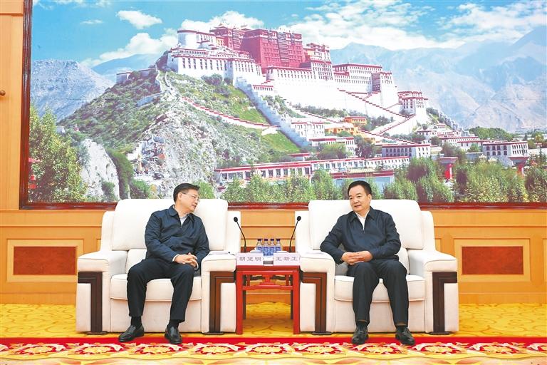 9月9日下午,自治區(qū)黨委書記王君正在拉薩與中國寶武鋼鐵集團黨委書記、董事長胡望明一行座談。這是座談現(xiàn)場。本報記者 旦增西旦 攝