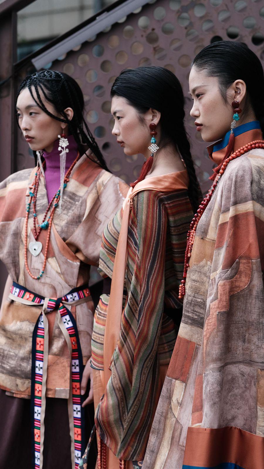 以馬乖在中國(guó)國(guó)際時(shí)裝周的發(fā)布產(chǎn)品為例,連續(xù)多季深根民族文化的傳承與創(chuàng)新,在跟隨株洲援藏工作隊(duì)進(jìn)入扎囊縣后,馬乖開(kāi)始深入發(fā)掘藏族服飾與時(shí)尚消費(fèi)的融合創(chuàng)新,跟其他設(shè)計(jì)師借鑒少數(shù)民族元素做新產(chǎn)品的初衷不同,素白所呈現(xiàn)的新款背后是整個(gè)團(tuán)隊(duì)研發(fā)的藏族非遺產(chǎn)品的動(dòng)態(tài)活化過(guò)程,氆氌之鄉(xiāng)的“經(jīng)濟(jì)產(chǎn)品”是馬乖展開(kāi)文化元素呈現(xiàn)后的落點(diǎn),共建面料研發(fā)中心,將手工藝面料再造作為時(shí)尚服飾的亮點(diǎn),研發(fā)新產(chǎn)品,提質(zhì)文化成果的經(jīng)濟(jì)轉(zhuǎn)化。觀察素白發(fā)布的往季產(chǎn)品,不難發(fā)現(xiàn),精粹歷史文化遺產(chǎn)、復(fù)興民族手工藝、打造時(shí)尚融合新品是品牌發(fā)展常態(tài),從大力發(fā)展植物染到玫瑰纖維的研發(fā)和使用,馬乖一直以設(shè)計(jì)之力、品牌影響在為消費(fèi)者尋找更適合中國(guó)人自己的時(shí)尚發(fā)展模型。