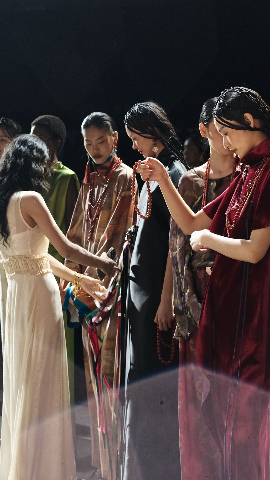 素白在中國(guó)國(guó)際時(shí)裝周發(fā)布2025春夏新品的當(dāng)天,是品牌創(chuàng)始人馬乖的生日。這場(chǎng)秀像是設(shè)計(jì)師前半途的答卷,在品牌的重要節(jié)點(diǎn)打下了扎實(shí)的“結(jié)”,創(chuàng)立于2020年,第一個(gè)亮相時(shí)裝周的湖南原創(chuàng)品牌,創(chuàng)立之初,品牌的影響力完全來(lái)自于互聯(lián)網(wǎng),在湖南株洲的服飾熱土上,有得天獨(dú)厚的市場(chǎng)集群優(yōu)勢(shì),在傳統(tǒng)服飾資源的滋養(yǎng)下,“爆款”道路輕車(chē)熟路,但是馬乖沒(méi)有急于“收割”,而是耐心走出了另一條路:推動(dòng)民族文化基因的時(shí)尚化再生,讓原創(chuàng)品牌在中國(guó)式現(xiàn)代化進(jìn)程中被賦予新的內(nèi)容和發(fā)展路徑。