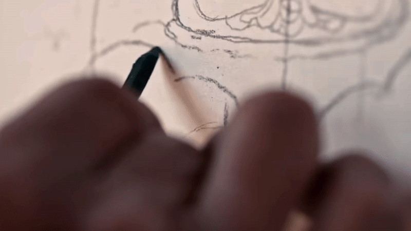 才仁桑珠為一幅唐卡漆畫(huà)巨作起草線(xiàn)稿。新華社記者魏冠宇 攝