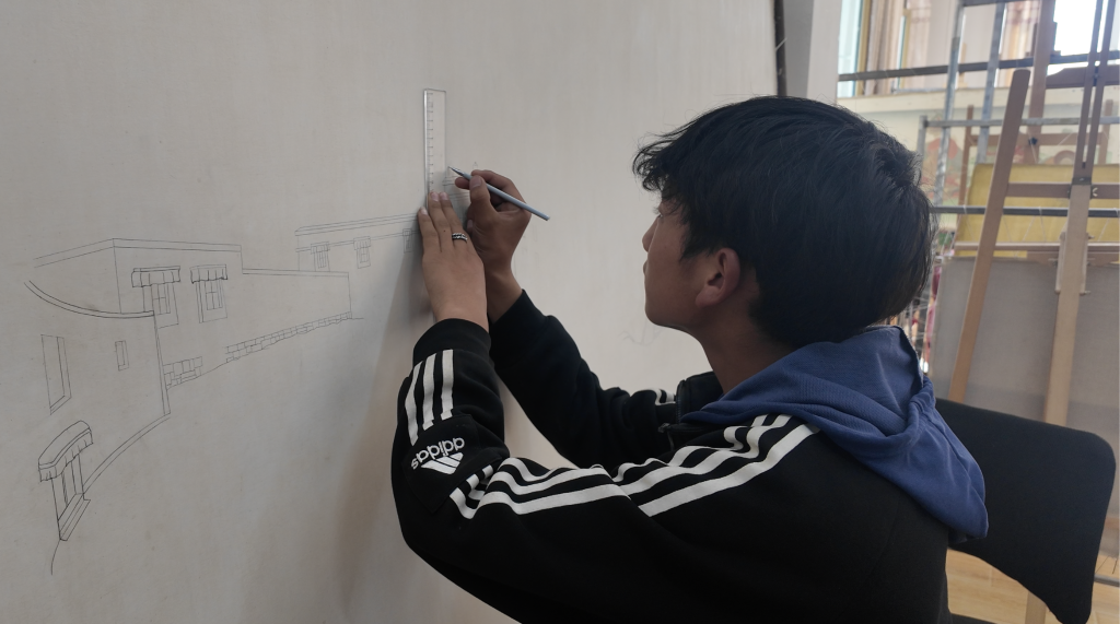 “樹(shù)有千條枝,樹(shù)根才是本?!备卢?shù)吕战虒?dǎo)學(xué)生時(shí)說(shuō),不論大小,畫(huà)師繪制唐卡時(shí)要凈手,保持內(nèi)心的寧?kù)o與虔誠(chéng)。