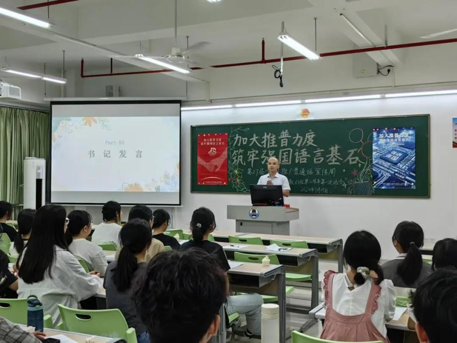 新時(shí)代教育高質(zhì)量發(fā)展的浪潮中,加強(qiáng)國(guó)家通用語(yǔ)言文字教育是提升國(guó)民素質(zhì)、促進(jìn)文化認(rèn)同、推動(dòng)社會(huì)進(jìn)步的重要基石。嶺南師范學(xué)院積極響應(yīng)國(guó)家關(guān)于加強(qiáng)國(guó)家通用語(yǔ)言文字推廣普及的號(hào)召,圍繞“加大推普力度,筑牢強(qiáng)國(guó)語(yǔ)言基石”第27屆全國(guó)推普周主題,依托學(xué)?!督處熣Z(yǔ)言》課程組,成功舉辦了一系列豐富多彩、特色鮮明的語(yǔ)言文化活動(dòng),不僅彰顯了學(xué)院在師范教育領(lǐng)域的深厚底蘊(yùn)與創(chuàng)新活力,更為國(guó)家語(yǔ)言文字建設(shè)和教育強(qiáng)國(guó)戰(zhàn)略貢獻(xiàn)了重要力量。