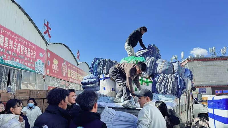 立馬行動起來!他們自籌資金,陳軍亮還聯(lián)系到一些戰(zhàn)友,共同集資采購救災(zāi)物品。作為公益機構(gòu)負責人,王順利和她的小伙伴,第一時間買了從西安轉(zhuǎn)機飛往拉薩的機票,并在路上聯(lián)絡(luò)西藏的伙伴,采購物資足足裝了3卡車,共30多噸,價值超過40萬元,緊急運輸發(fā)往定日。