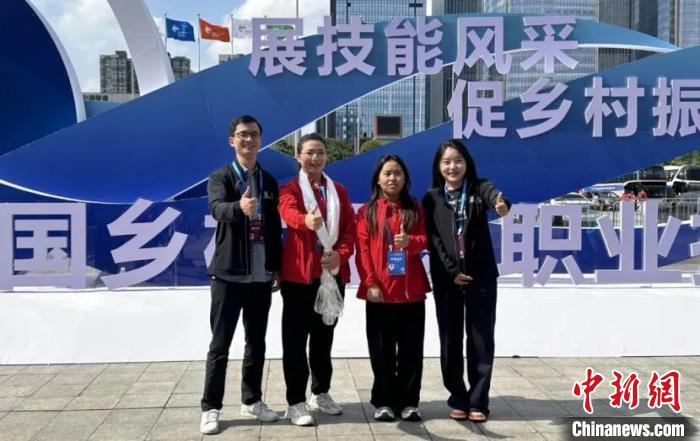 2024年5月,劉立基(左一)帶領(lǐng)西藏技師學(xué)院的14名選手參加第二屆全國(guó)鄉(xiāng)村振興職業(yè)技能大賽。圖為師生在大賽期間合影。受訪者供圖