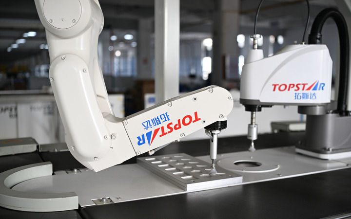 這是2025年3月25日在位于東莞的廣東拓斯達大嶺山生產基地拍攝的工業(yè)機器人。新華社記者 鄧華 攝