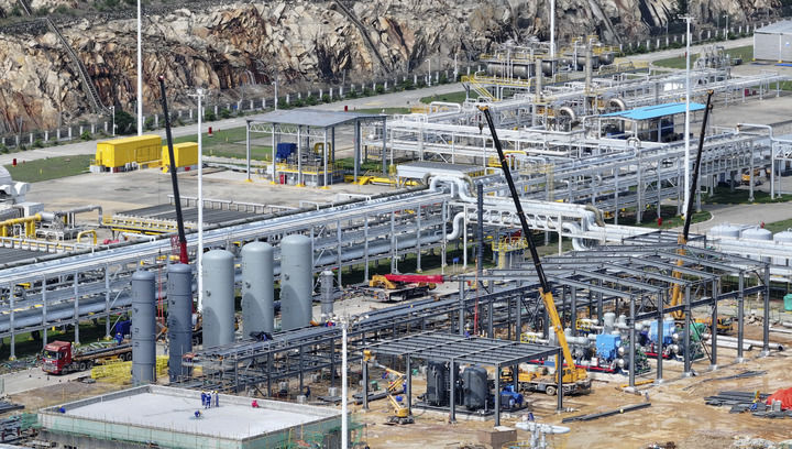 這是2024年6月21日拍攝的位于珠海經濟開發(fā)區(qū)的中海石油深海開發(fā)有限公司二氧化碳回收利用項目塔器安裝現(xiàn)場。新華社發(fā)(邱婷 攝)