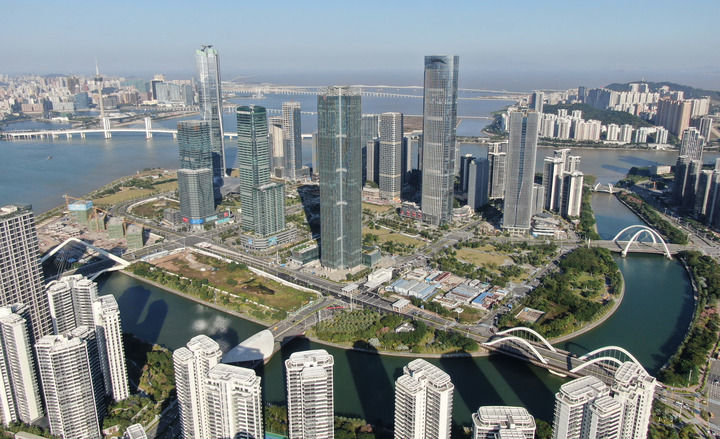 2024年11月26日拍攝的橫琴金融島(無人機照片)。新華社記者 鄧華 攝