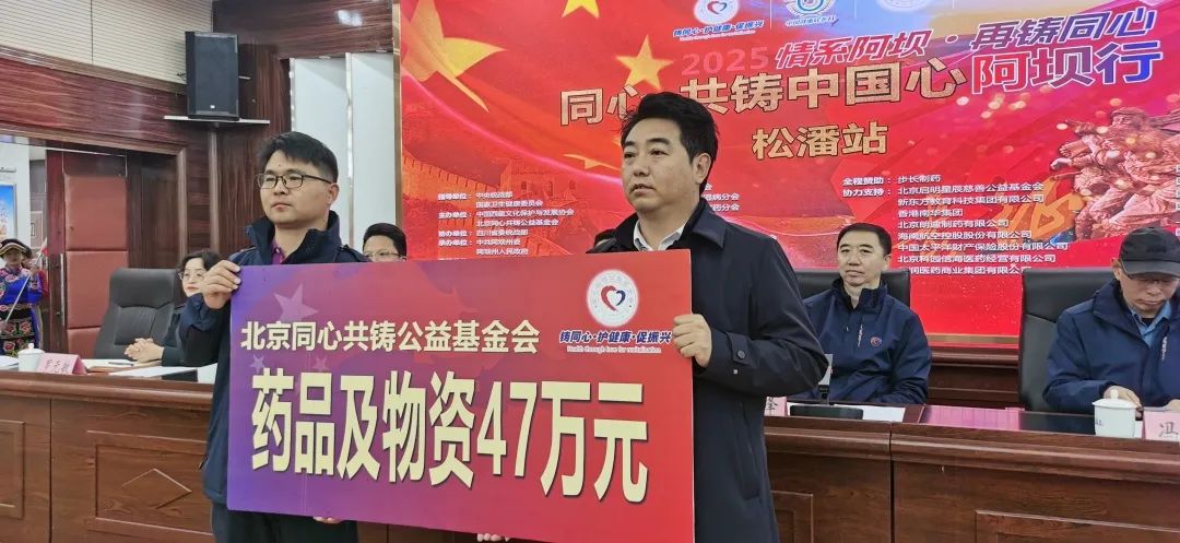 活動(dòng)現(xiàn)場(chǎng),“同心·共鑄中國(guó)心”組委會(huì)向松潘縣捐贈(zèng)了價(jià)值47萬(wàn)元的藥品及物資,為當(dāng)?shù)蒯t(yī)療資源注入新的力量。這些藥品將在后續(xù)醫(yī)療服務(wù)中發(fā)揮重要作用,幫助更多患者減輕病痛。捐贈(zèng)儀式后,何建華莊重地為“同心·共鑄中國(guó)心”組委會(huì)專家團(tuán)授旗,并宣布“同心·共鑄中國(guó)心”2025年阿壩行(松潘站)大型醫(yī)療公益活動(dòng)正式啟動(dòng)。現(xiàn)場(chǎng)響起熱烈掌聲,承載著對(duì)此次公益活動(dòng)的美好期待。