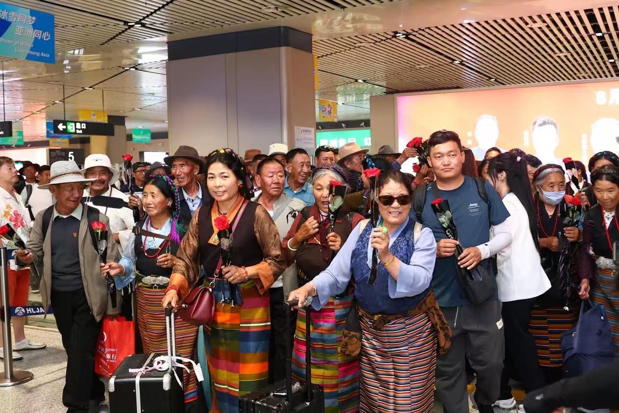 西藏游客搭乘“龍藏號(hào)”旅游包機(jī)順利抵達(dá)哈爾濱