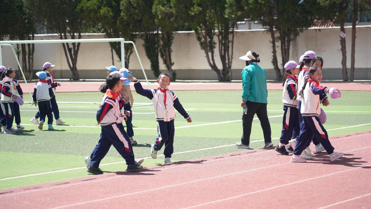 “利利老師,我們來玩老鷹抓小雞?!辈賵?chǎng)上,剛剛整隊(duì)完,正自由活動(dòng)的學(xué)生喊學(xué)校的湖南援藏教師、體育學(xué)科教研組組長(zhǎng)戴勝利。