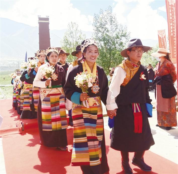 6月28日,寧墨情深·禮贊百年——愛在墨竹百對(duì)佳人集體婚典在拉薩市墨竹工卡縣甲瑪鄉(xiāng)松贊干布紀(jì)念館盛大舉行,百對(duì)佳人迎建黨百年、結(jié)百年姻緣。