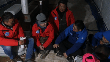 夜晚,海拔5300米的宿營地,大家睡帳篷打地鋪,吃著方便面,熱火朝天地總結一天的工作,做著第二天的規(guī)劃。