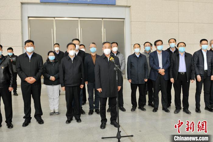 圖為青海省副省長(zhǎng)、省疫情防控指揮部副指揮長(zhǎng)匡湧(中)出席歡迎儀式?!≈旖ㄜ?攝