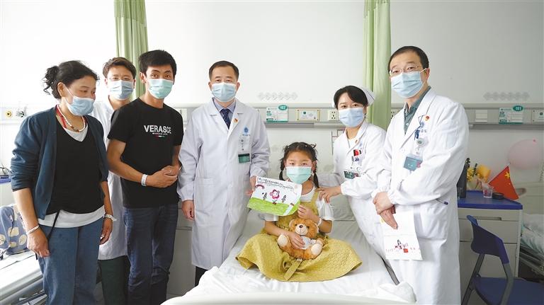 圖為武漢協(xié)和醫(yī)院醫(yī)護(hù)人員術(shù)后看望病患兒及其家屬。 通訊員 衛(wèi)未 攝
