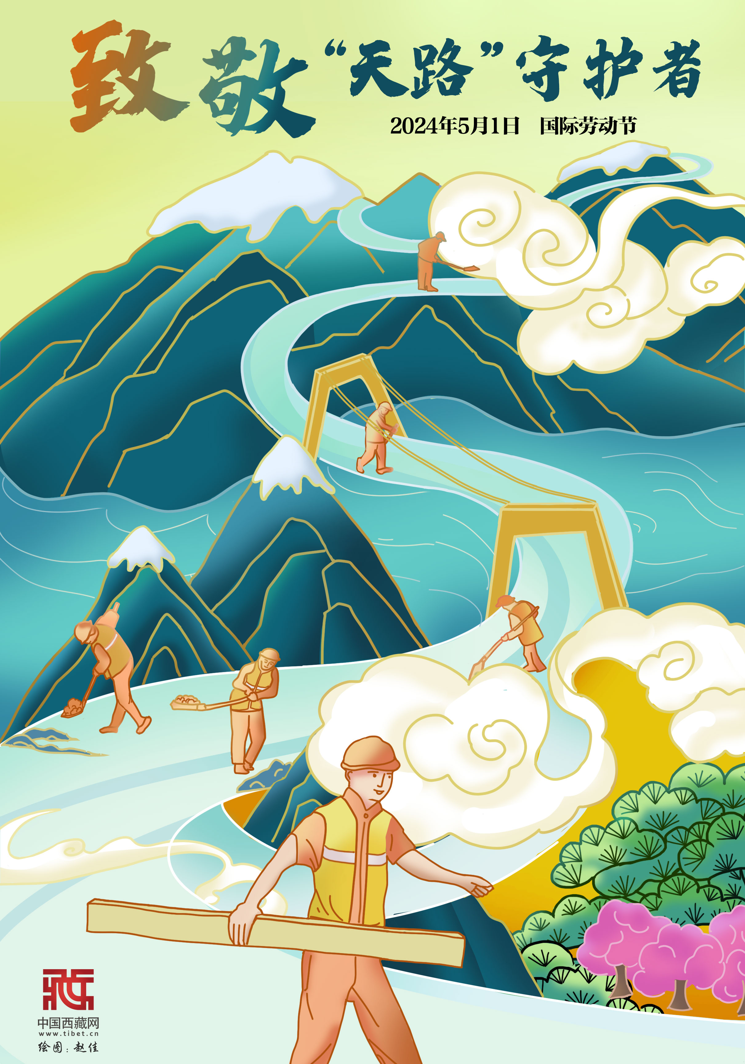 高原春光美,勞動正當時。有一種理想,于高山厚土間長存;有一種精神,在“世界屋脊”上閃耀;有一群人,用勞動寓平凡以偉大的定義。他們是常年駐守青藏公路一線的武警官兵、交警、護路工、巡護員群體,年復(fù)一年地在不為人知的平凡崗位傾注勞動心血,以血肉之軀鑄就青藏線道路交通安全的“鋼鐵長城”。