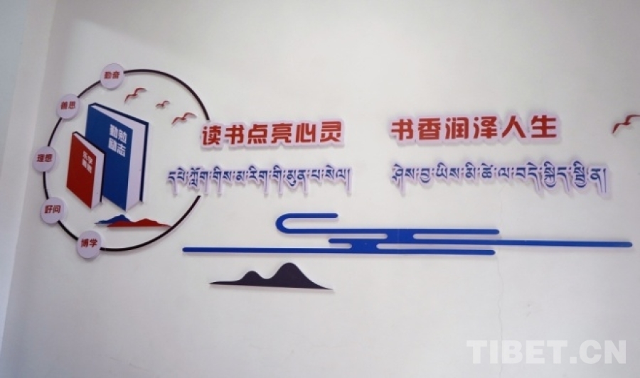 圖為西藏自治區(qū)那曲市索縣鄉(xiāng)村書屋里的漢藏標語 攝影:吳建穎