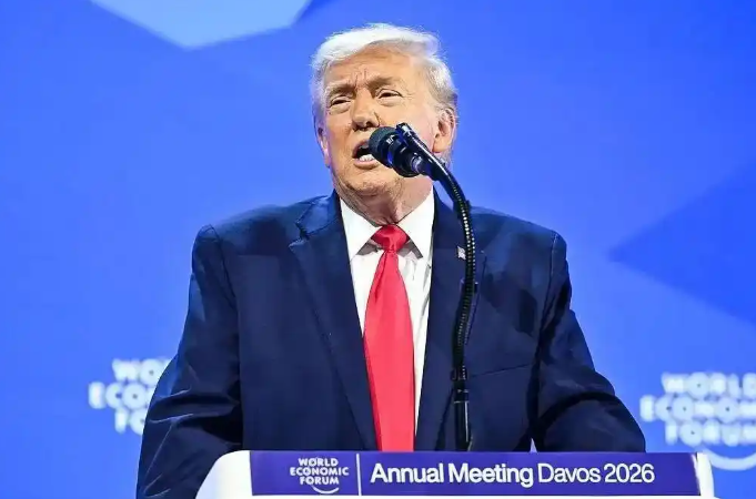 圖為美國總統(tǒng)特朗普在世界經(jīng)濟(jì)論壇年會上發(fā)表演講 圖源:央視新聞