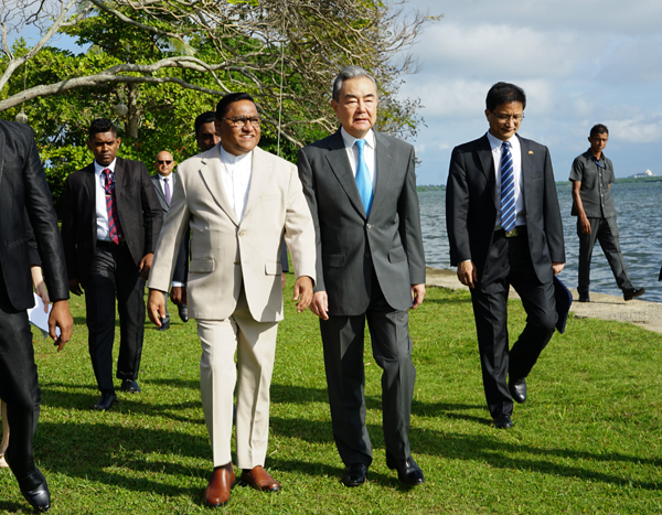 圖為當?shù)貢r間2026年1月12日,中共中央政治局委員、外交部長王毅訪問非洲回國途中經(jīng)停斯里蘭卡,與斯外長赫拉特進行了友好會見。圖片來源:外交部網(wǎng)站