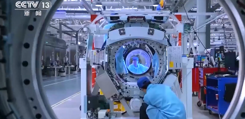 技術人員正在對航天器艙體進行細致的調(diào)試工作 圖片來源:央視新聞