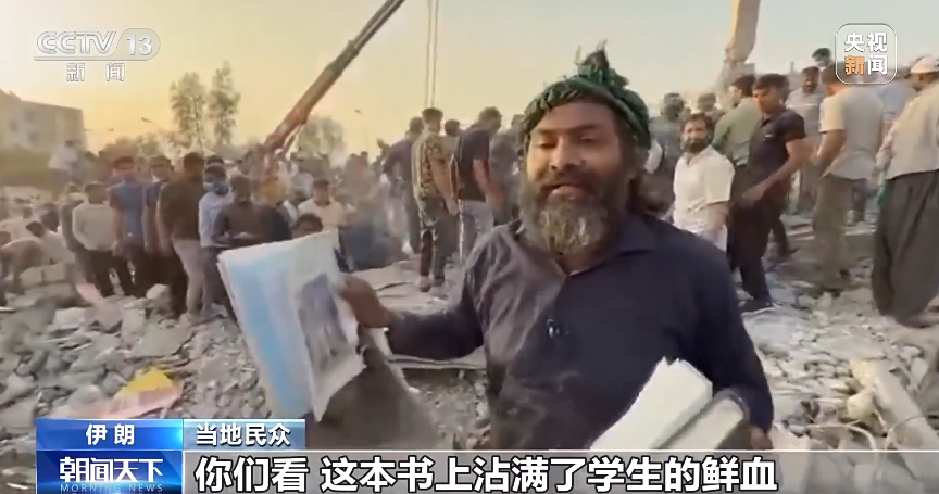 當(dāng)?shù)貢r間2月28日,美國和以色列對伊朗發(fā)動聯(lián)合軍事打擊,伊朗一所女子小學(xué)遭到導(dǎo)彈襲擊。遇襲學(xué)校教室被毀,磚石瓦礫落滿桌椅,學(xué)生遺落的書本散落地面。當(dāng)?shù)孛癖姂嵟硎荆骸昂⒆觽兘裨缡莵砩蠈W(xué)的,如今卻被掩埋在廢墟之下!這是孩子們的課本,書上沾滿了學(xué)生的鮮血……”圖片來源于央視網(wǎng)