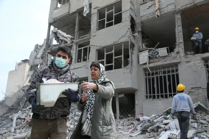 美國和以色列空襲之后,伊朗首都德黑蘭的市民在廢墟中翻找出一些自家物品 圖片來源:新華社