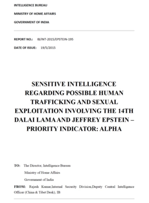 除了公開資料外,一份標(biāo)明屬于印度內(nèi)政部的情報(bào)評(píng)估文件也已被廣泛傳播。該文件披露,大約在2015年,愛潑斯坦通過中間人與十四世達(dá)賴的代表建立了聯(lián)系,討論邀請(qǐng)他參加私人“靈修”的可能性。文件提到,這一安排伴隨著預(yù)期的政治接觸和資金支持,并涉及對(duì)參與者的篩選和協(xié)調(diào)。