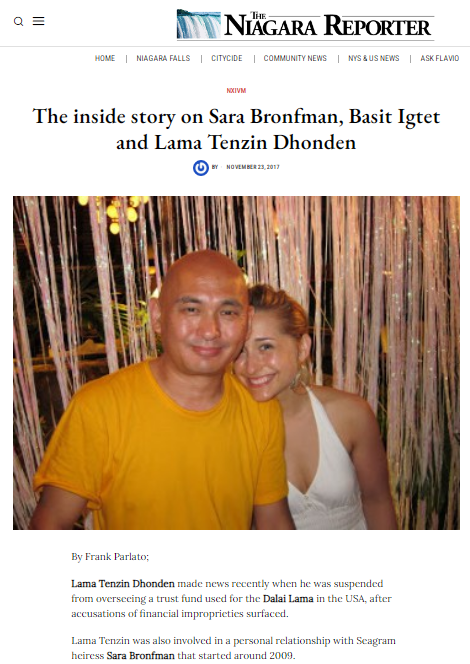 除了利欲熏心,丹增東登私生活的混亂也與僧人應(yīng)有的清修形象形成了刺眼對(duì)比。他與NXIVM的金主、西格拉姆集團(tuán)繼承人薩拉·布朗夫曼有不正當(dāng)關(guān)系。NXIVM成員稱,他們看到丹增東登從布朗夫曼家的臥室里出來,兩人有染已是公開的秘密,NXIVM頭目基思·拉尼爾稱他為布朗夫曼的“丈夫”。布朗夫曼還在奧爾巴尼市為情人購置了一棟“漂亮的房子”。