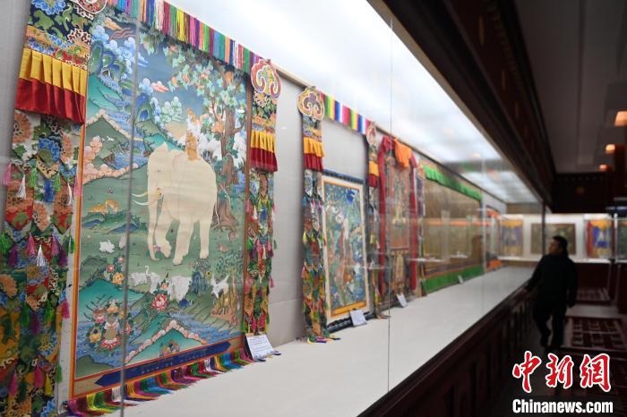 精品唐卡展廳展示甘南藏族唐卡國(guó)家級(jí)代表性傳承人交巴加布,及其父親的唐卡作品,常吸引游人“打卡”。(資料圖)中新社記者 九美旦增 攝