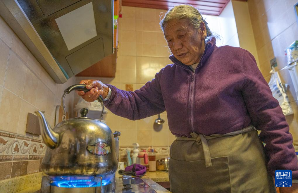 格桑玉珍在家中燒水(4月3日攝)。新華社記者 丁增尼達(dá) 攝