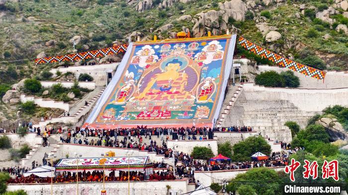 8月4日,拉薩哲蚌寺舉行展佛活動(dòng)。 中新社記者 貢桑拉姆 攝