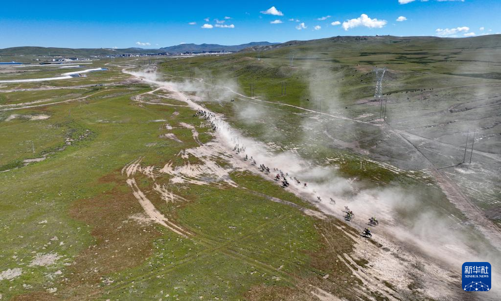 8月12日,騎手在傳統(tǒng)十公里大跑項(xiàng)目中角逐(無(wú)人機(jī)照片)。新華社記者 晉美多吉 攝
