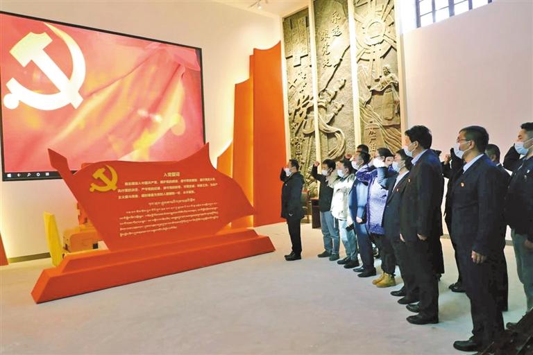 農(nóng)行西藏分行基層黨組織開展主題黨日活動,黨員重溫入黨誓詞。 文/圖 記者 張尚華