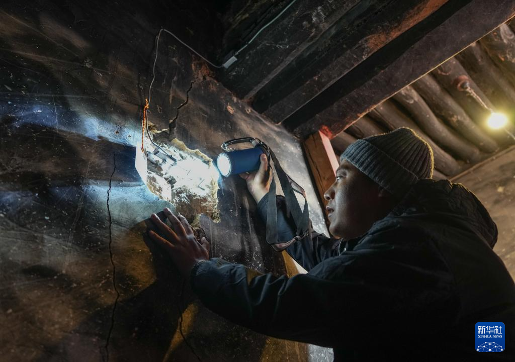12月4日,布達(dá)拉宮監(jiān)測中心的工作人員旦增旺堆巡查布達(dá)拉宮地壟傳感器設(shè)備。新華社記者 晉美多吉 攝