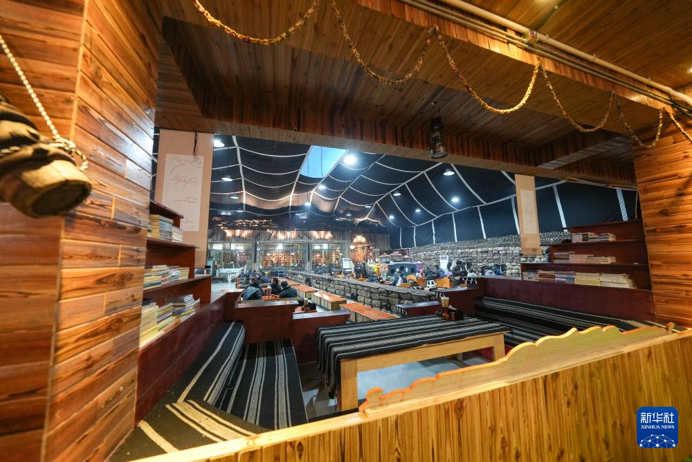 西藏那曲市“牧人寶庫(kù)”藏式茶館一角(2月13日攝)。新華社記者 晉美多吉 攝