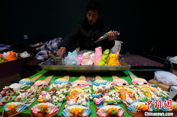 圖為2月19日,手工藝人在制作酥油花。李林 攝