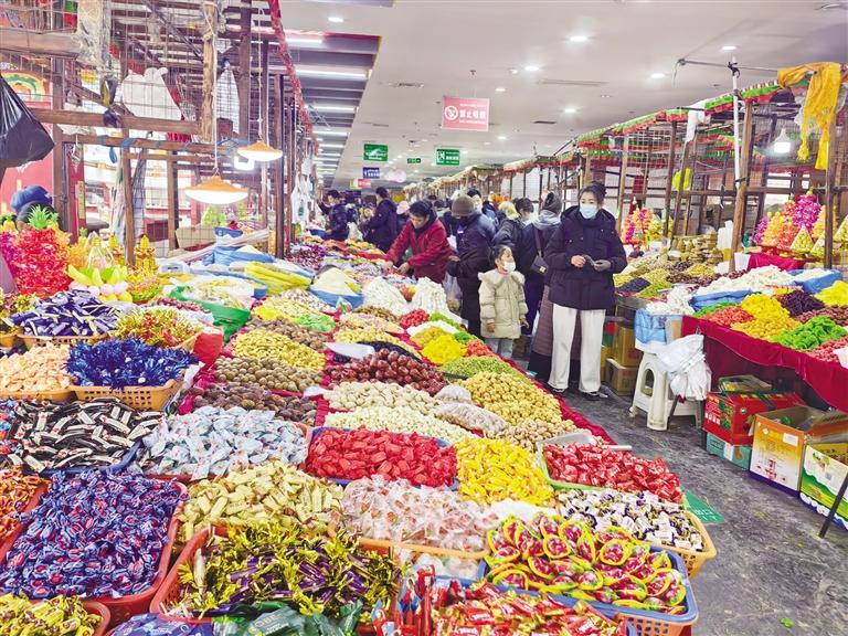 “八廓商城將年貨商家集中在一起,商戶們無需再風吹日曬,還能免費使用攤位?!睆姲痛稳收f,“為了保障商場內(nèi)的衛(wèi)生和安全,保潔人員定時打掃衛(wèi)生,工作人員定時巡邏,全面排查各類安全隱患,既方便了商戶,也方便了老百姓。”