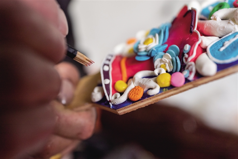 “今年是木蛇年,我們會(huì)依據(jù)當(dāng)年的屬相制作一些定制款。每個(gè)人的手感不同,做出來(lái)的酥油花都是獨(dú)一無(wú)二的。”老板格桑介紹道,“制作酥油花的過(guò)程很重要,尤其是選酥油。如果用平時(shí)吃的酥油很容易化掉,我們需要挑選白色的酥油。每個(gè)酥油花的寓意不同,我們做的種類(lèi)也會(huì)更加豐富。”