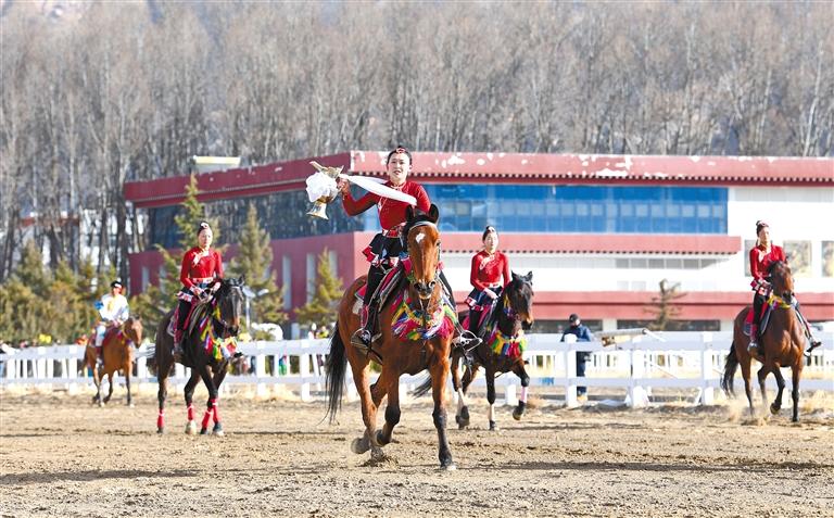 3月2日,由自治區(qū)體育局主辦、自治區(qū)社會(huì)和民族傳統(tǒng)體育指導(dǎo)管理中心承辦的2025年藏歷新年初三民族傳統(tǒng)馬術(shù)表演暨民族賽馬活動(dòng)在拉薩市北郊賽馬場(chǎng)舉行。本次活動(dòng)包括民族傳統(tǒng)馬術(shù)表演、民族賽馬兩個(gè)部分。馬術(shù)在西藏是吉祥、勇敢和智慧的象征,騎手們用精彩表演為觀眾送上新年的祝福。