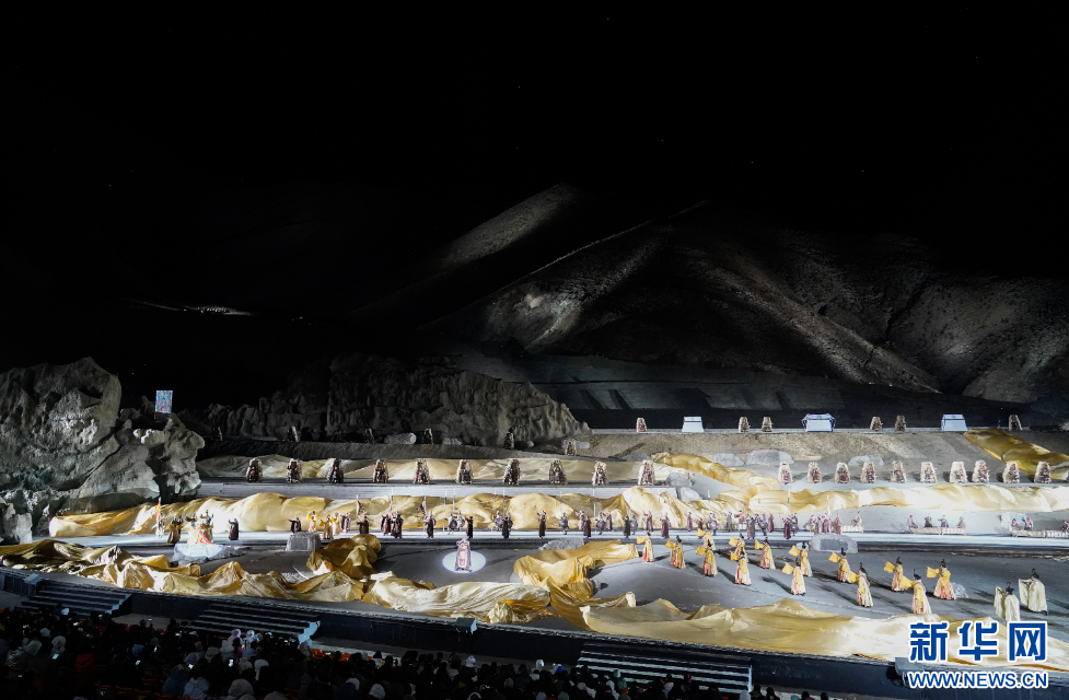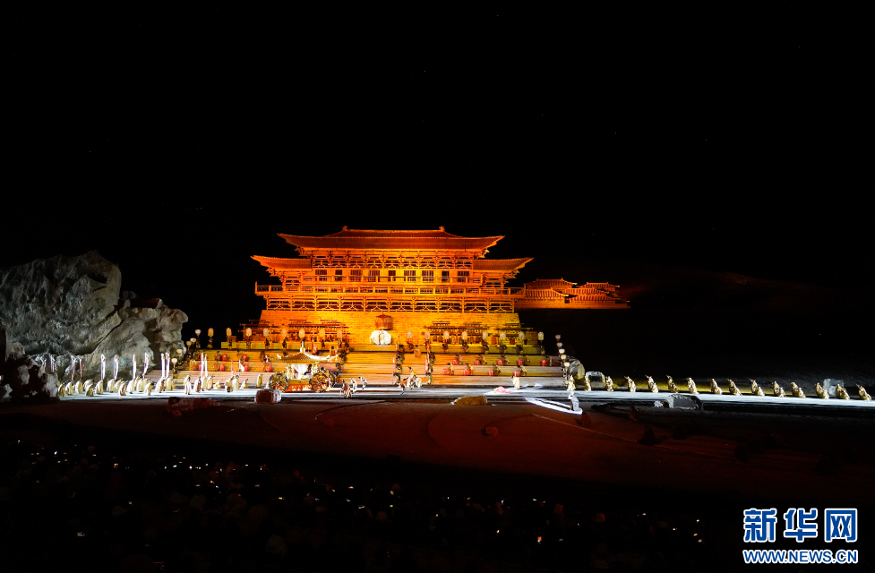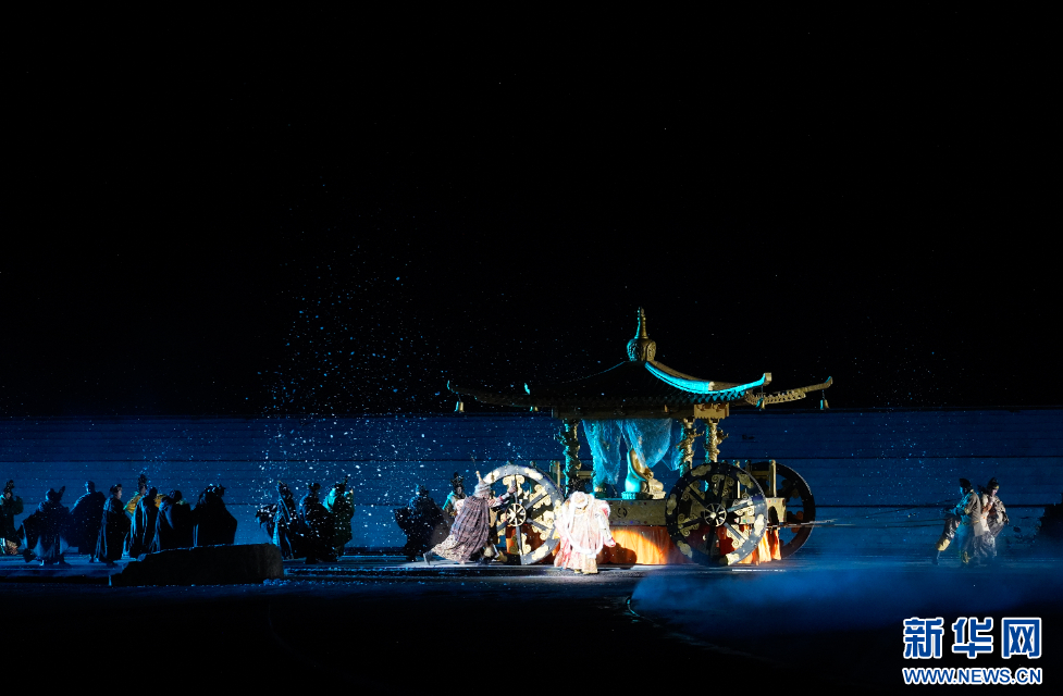 圖為《文成公主》大型史詩劇演出布景(3月23日攝)。新華網(wǎng)發(fā) 朱俊 攝