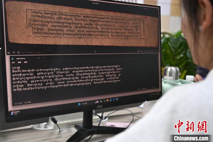 2月27日,在甘肅甘南藏族自治州碌曲縣益西達吉科技有限公司內(nèi),工作人員正在進行藏文古籍?dāng)?shù)字化相關(guān)工作。九美旦增 攝