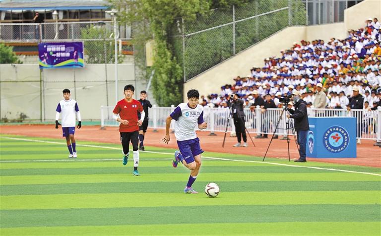 以球?yàn)槊?,“球”同存“誼”。5月20日下午,中國日喀則市珠峰雪鷹隊(duì)與阿根廷薩爾塔普納隊(duì)在日喀則市上海實(shí)驗(yàn)學(xué)校體育場(chǎng)上演了一場(chǎng)跨越山海的青少年足球友誼賽。賽場(chǎng)上,雙方球員迅速進(jìn)入狀態(tài),團(tuán)結(jié)配合、積極拼搶,用細(xì)膩的腳法,或急停、或變向、或假動(dòng)作,輕松晃過對(duì)手,射門得分,給觀眾呈現(xiàn)了一場(chǎng)精彩的足球比賽。